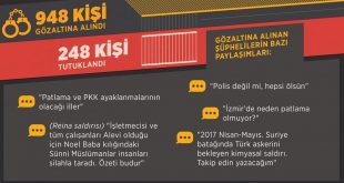 İstanbul’un Beşiktaş ilçesinde gerçekleştirilen terör saldırının ardından sosyal medyada terör yanlısı paylaşımlarda bulunduğu ya da örgüt propagandası yaptıkları iddiasıyla 948 kişi gözaltına alındı, zanlılardan 248’i tutuklandı. AA muhabirinin derlediği bilgiye göre, güvenlik güçleri, ülkenin barış ve huzurunu bozmak için siviller ile çocukları dahi hedef almaktan çekinmeyip hain eylemlerine devam eden …