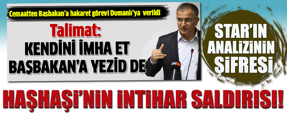 MEDYAGUNDEM.COM- stargazete.com Gülen örgütü üyesi Ekrem Dumanlı’nın dün akşam Samanyolu Haber’de Başbakan Erdoğan’a yönelik ettiği “Yezid” hakaretini çarpıcı bir analizle manşetine taşıdı. Cemaatin Başbakan Erdoğan’a hakaret görevini Ekrem Dumanlı’ya verdiğine dikkat çeken STAR, “Talimat: kendini imha et, Başbakan’a Yezid de” başlığını kullandı. Bu aslında “Haşhaşi’nin intihar saldırısı” demekti. İşte o …