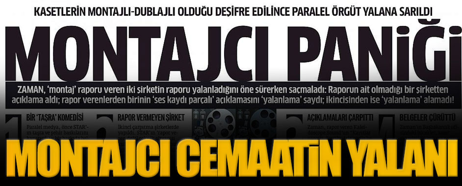 İnternet sitesinden STAR’ın belgeli haberini yalanlamak için çırpınan Zaman, boşa çabaladıkça komik duruma düştü. Paralel medya, gazetemizin ‘Taşra’ ve ‘Şehir’ baskılarını karıştırarak bir skandala imza attı. STAR’ın, paralel yapının dublajlı montajlı ses kaydı tuzağını ortaya çıkarması üzerine paniğe kapılan Zaman, hangi yalana sarılacağını bilemedi. Panikle tacize başlayan paralel medya, montaj …