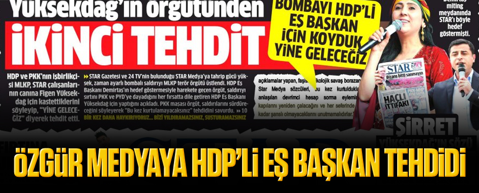 Bugün İstanbul Sancaktepe’de miting yapan HDP Eş Genel Başkanı Selahattin Demirtaş eline aldığı Sabah, Yeni Şafak, Star, Takvim, Akşam ve Güneş gazetelerini yuhalatarak ardından yere attı. Demirtaş’ın bu hareketine tepki gösteren Yeni Şafak Genel Yayın Yönetmeni İbrahim Karagül, “Ne yani Demirtaş, gazetelerimizi PKK’ya hedef mi gösteriyorsun, gazete binalarını mı kurşunlatacaksın!” …