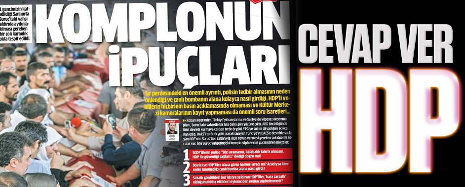 Sır perdesindeki en önemli ayrıntı, polisin tedbir almasının neden önlendiği ve canlı bombanın alana kolayca nasıl girdiği. HDP’li vekillerin hiçbirinin basın açıklamasında olmaması ve Kültür Merkezi kameralarının kayıt yapmaması da önemli soru işaretleri… Suruç’taki Amara Kültür Merkezi bahçesinde Ezilenlerin Sosyalist Partisi (ESP) gençlik yapılanması üyelerini hedef alan provokatif saldırı, her …