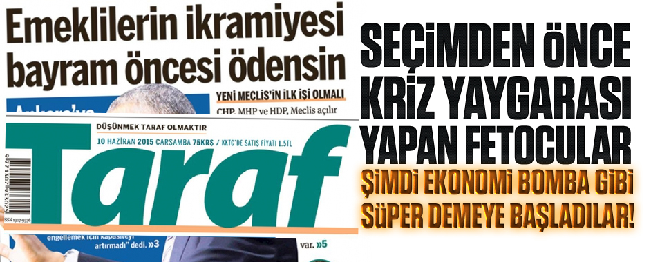 Paralel Yapı’nın yayın organı Taraf, seçimden önce AK Parti’yi yıpratmak için ‘kriz’ edebiyatı yaparken, seçimden sonra bütçenin çok iyi durumda olduğunu itiraf etmek zorunda kaldı. 7 Haziran’dan önce AK Parti’nin iktidardan düşmesi için yürütülen algı operasyonunun önemli ayaklarından biri olan Paralel Yapı’ya bağlı Taraf’tan kritik bir itiraf geldi. Taraf, bütçede …