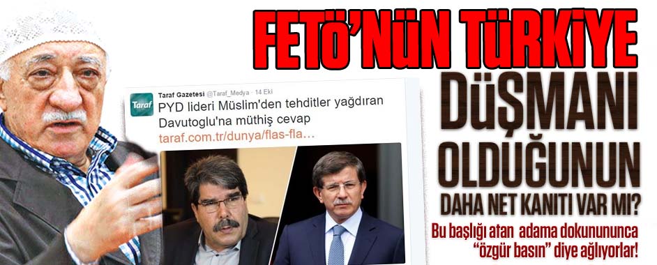 Fetullahçı Terör Örgütü (FETÖ) medyasının gazetesi olan Taraf, Başbakan Ahmet Davutoğlu’nun açıklamasını skandal bir manşetle duyurdu. Paralel gazete PKK medyasının ağzını kullanarak okuyucularına sunduğu haberle PKK’nın Suriye kolu olan PYD’yi savundu. ABD’nin PYD’ye yaptığı silah yardımı sonrası Başbakan Davutoğlu, terör örgütlerinin Türkiye için herhangi bir tehdit oluşturması halinde “Bir an …