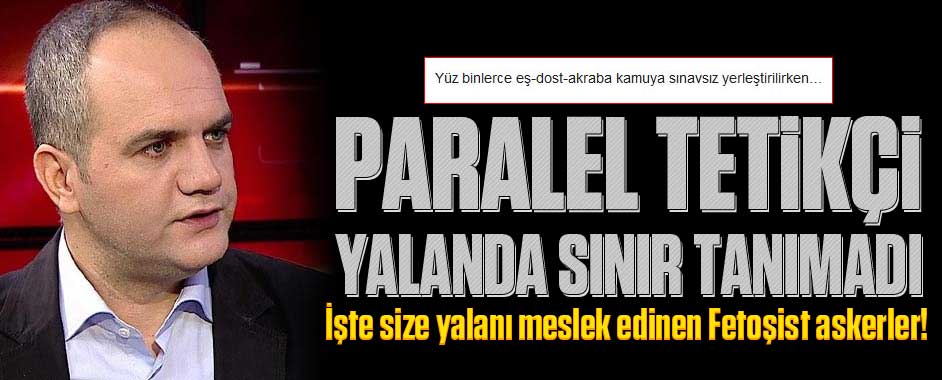 Fetoşistler Yalanı meslek edindiler, ideolojileri oldu… İşte size en müptezel örnek… MEDYAGUNDEM.COM- Gülen örgütünün medyadaki tetikçilerinin nasıl yalanı bir “ideloji” haline getirdiğini sürekli örneklerle gündeme getiriyoruz. İşte yine o tetikçi… Bugün gazetesi yazarı Tarık Toros bakın nasıl bir ifade kullanmış bugünkü yazısında: “…Yüz binlerce eş-dost-akraba kamuya sınavsız yerleştirilirken… Halkın gündemi, …