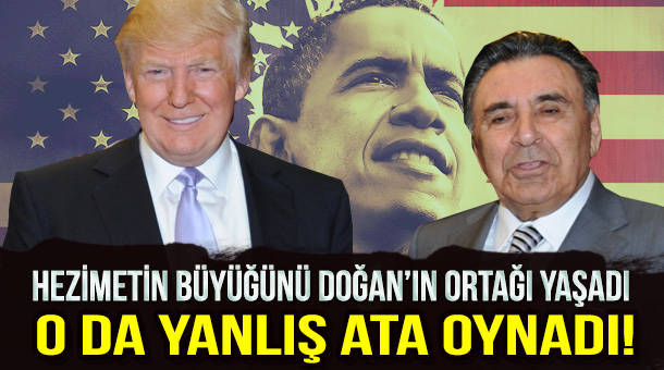 MEDYAGÜNDEM- ABD Başkanlık seçimi Barack Obama’nın zaferiyle sonuçlandı. Ortaya çıkan sonuç dünyanın en ünlü ve en zengin işadamlarından biri olarak kabul edilen Donald Trump için hezimet oldu. ABD’deki seçimlerde Mitt Romney’i desteklediğini açıklayan Trump, yanlış ata oynadı ve kaybetti. Trump, Aydın Doğan’ın da ortağı. İstanbul’daki Trump Towers projesine birlikte imza …