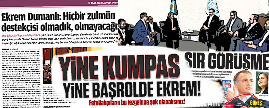 Yine Fetullahçı bir tezgah… Yine başrolde Ekrem Dumanlı… MEDYAGUNDEM.COM- Bugün Güneş gazetesi gündeme damga vuran bir haber yayınladı. “Sır görüşme” başlıklı haberde, “Paralel Yapı’nın yayın organı Zaman Gazetesi’nin Genel Yayın Müdürü Ekrem Dumanlı geçtiğimiz günlerde Diyarbakır’a giderek HDP’li Belediye Başkanı Gülten Kışanak ile gizli bir görüşme yaptı.” denildi. Zaman gazetesinin …
