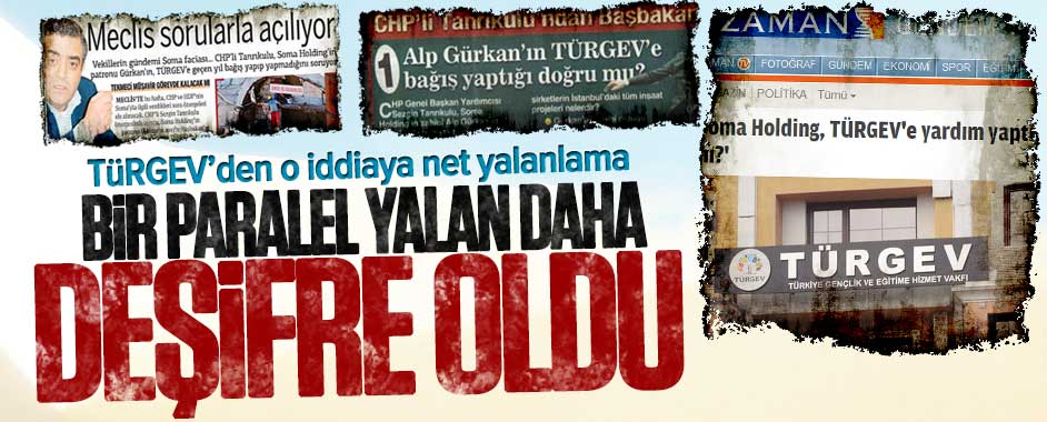 MEDYAGUNDEM.COM- Paralel örgüt medyası CHP ile elele Soma’daki ölüm madeninin sahibi Alp Gürkan’ın TÜRGEV’e bağışta bulunduğu iddiasını iki gündür bir “algı operasyonu” ve “kara propaganda” tekniğiyle gündemde tutuyorlardı. TÜRGEV o iddiayı net biçimde yalanladı. TÜRGEV’den yapılan açıklama şöyle: “Değerli Kamuoyu, Bilindiği üzere, CHP İstanbul Milletvekili Sayın Sezgin Tanrıkulu, TBMM’ne bir …