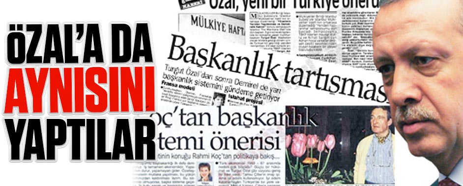 Cumhurbaşkanı Erdoğan’ın, ‘Başkanlık sistemi’ önerisine gösterilen tepki ve suçlamaların, geçmişte aynı teklifi getiren Turgut Özal’a karşı da yürütüldüğü ortaya çıktı. Cumhurbaşkanı Recep Tayyip Erdoğan’ın Başkanlık sistemine geçilmesine yönelik isteğini dile getirmesi, paralel yapı ve basını, paralel yapı ile işbirliği içindeki basın ile muhalefet partilerinden tepki görürken, 25 yıl önce de …