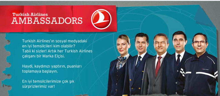Avrupa’nın en iyi hava yolu şirketi Türk Hava Yolları, insan kaynakları uygulamalarında sosyal medyada bir ilki gerçekleştirerek; en iyi marka elçilerini arıyor… Türk Hava Yolları, yeni uygulaması “Turkish Airlines Ambassadors” ile insan kaynakları alanında sosyal medyada yeni bir yaklaşım geliştiriyor. Facebook üzerinden gerçekleşen uygulamayla Türk Hava Yolları, çalışanları ile sosyal medya …
