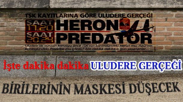 Predator 3 saat 4 dakika sonra geldi Wall Street Journal’in, Uludere’den ilk görüntüyü Predator verdi haberi yanlış. Çünkü TSK, Heron’dan ilk görüntüyü 17.20’de aldı. Aynı saatte 180 kilometre uzaktaki Kandil’de olan Predator ise, 3 saat 4 dakika sonra bölgeye geldi. ABD’nin önemli gazetelerinden Wall Street Journal’in Pentagon’a dayandırdığı, “Uludere konvoyunun …