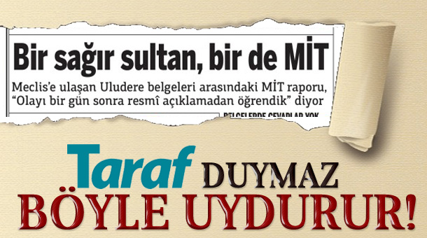 MEDYAGÜNDEM- “Bir kısım medya” ile Taraf gazetesi bugün fena çuvalladı. Özellikle Taraf’ı rezil eden açıklama MİT’ten geldi. Bugün Taraf’ın birinci sayfasında “Bir sağır sultan, bir de MİT” başlığı ile verilen ve diğer gazetelerde de yer alan haber yalan çıktı. Taraf’ın haberinde şöyle denilmişti: İşte bu ayrıntı MİT tarafından resmen yalanlandı, …