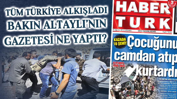 MEDYAGÜNDEM- Gazetelerin birinci sayfasına damga vurdu o fotoğraf… Şırnak’ın Uludere ilçesinde askerleri taşıyan minibüsün devrilmesi sonucu 9 asker ve 1 korucu şehit oldu, 9 asker de yaralandı. Kaza yapan askerlerin yardımına, hava operasyonunda yakınlarını kaybeden Uludereliler koştu. Uludereliler yaralı askerleri omuzlarında taşıdı. Vatan “Bu fotoğrafa iyi bakın” sürmanşetini attı. Cumhuriyet …