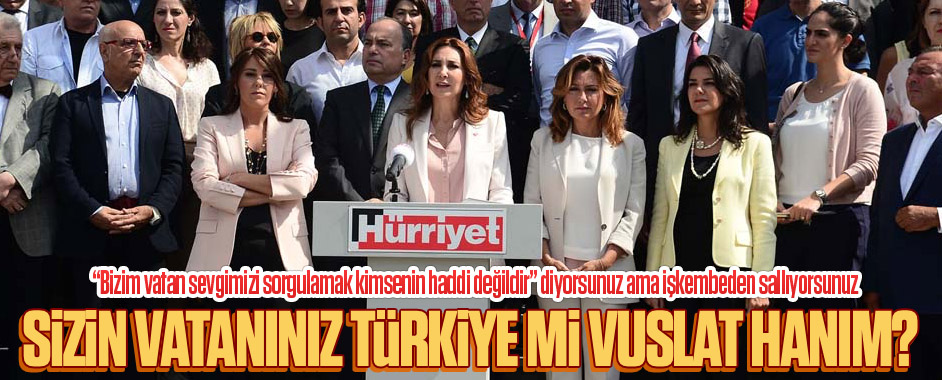 Her ne kadar Vuslat Hanım, dünkü açıklamasında “Bizim vatan sevgimizi sorgulamak kimsenin haddi değildir” diyorsa da.. İşkembeden sallıyor.. Gazetesinin sahibi olan Hürriyet Gazetecilik A.Ş.’nin yönetim kurulu üyeleri arasındaki iki isme bakın.. Bana hak vereceksiniz.. Kim o iki isim? Hürriyet gazetesinin önünde, çalışanlarla birlikte basın açıklaması yapan Vuslat Sabancı, gazetelerine sahip çıkılması çağrısı yapmış. Niçin “sahip çıkılacak”mış …