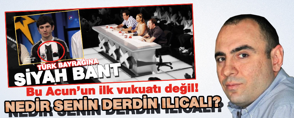 MEDYAGÜNDEM- Sabah/Günaydın yazarı Mevlüt Tezel, Yetenek Sizsiniz Türkiye yarışmasında Türk bayrağına siyah bant çekerek büyük bir sansüre imza atan Acun Ilıcalı ile ilgili sert bir yazı yazdı. “Acun’un bayrakla derdi ne?” başlıklı yazısında Tezel şöyle yazdı: “Acun’un açıklaması, imza attığı rezaleti de ikiye katlıyor. O yarışmacı milli amigo Birol gibi elinde …