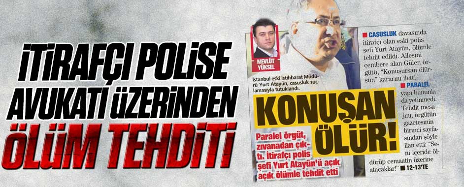 Paralel yapının tüm detaylarını anlatmak üzere itirafçı olmak isteyen İstanbul Emniyet Müdürlüğü Terörle Mücadele Şubesi eski Müdürü Yurt Atayün, ailesiyle tehdit edildi. İddialara göre tehdidin arkasında, Atayün için paralel yapı tarafından verilen avukat Kemal Şimşek var. İstanbul Emniyet Müdürlüğü Terörle Mücadele Şubesi eski Müdürü Yurt Atayün’ün, tutuklandığı casusluk operasyonu öncesi …