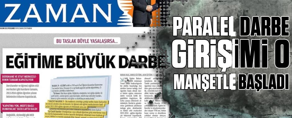Paralel yapının yayın organı Zaman, dershanelerin dönüştürülmesini öngören düzenlemeyi geçtiğimiz 14 Kasım’da “Eğitime büyük darbe” başlığıyla manşetten duyurarak AK Parti’ye savaş açtı. Hemen ardından cemaat başarısızlıkla sonuçlanan 17 Aralık darbe girişimini sahneye koydu. Bu sürecin üzerinden tam bir yıl geçti. 17-25 Aralık darbe girişimiyle siyaseti dizayn etmeye çalışan paralel yapının, …