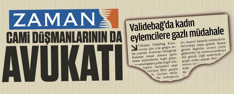 Paralel çetenin yayınorganı Zaman, Validebağ camisine karşı çıkanların avukatlığında soyundu. Paralel Zaman, şimdi de Üsküdar Validebağ’da, belediyeye ait tapulu arsayı otopark olarak kullanmak için işgal edenlere sahip çıkıp, o alana yapılacak camiye engel olmaya çalışanların avukatlığına soyundu.
