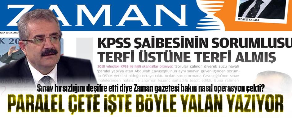 Zaman Gazetesi’nin, 2010 yılındaki Kamu Personeli Seçme Sınavı’yla ilgili telaşı devam ediyor. Paralel yapının olaydaki sorumluluğunu perdeleme çabasına giren Zaman, konuyla ilgili, manşetten bir haber yaptı. Haberde sınavdaki şaibenin sorumlusunun halen TÜBİTAK Başkan Yardımcılığı yapan Abdullah Çavuşoğlu, olduğu iddia edildi. Çavuşoğlu, bu iddialara A Haber yayınında cevapladı. Soruşturma çerçevesinde şüpheli …