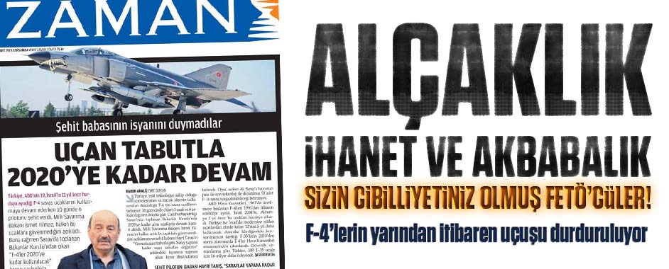 “Uçan tabut” olarak nitelenen RF-4 uçakları yarından itibaren hizmetten kalkıyor. Türkiye’nin menfaatlerine akbabalar gibi sırf paralel çıkarları için “çöken” Fetullahçı terör örgütünün gazetesi Zaman bugünkü manşetiyle nasıl bir alçaklığa hizmet ettiğini de gösterdi. MEDYAGUNDEM.COM- Muharip Hava Kuvvetleri Komutanı Orgeneral Abidin Ünal, F-4 uçaklarının yarın itibarıyla uçuşunun durdurulacağını açıkladı. F-4 yerine F-16 savaş …