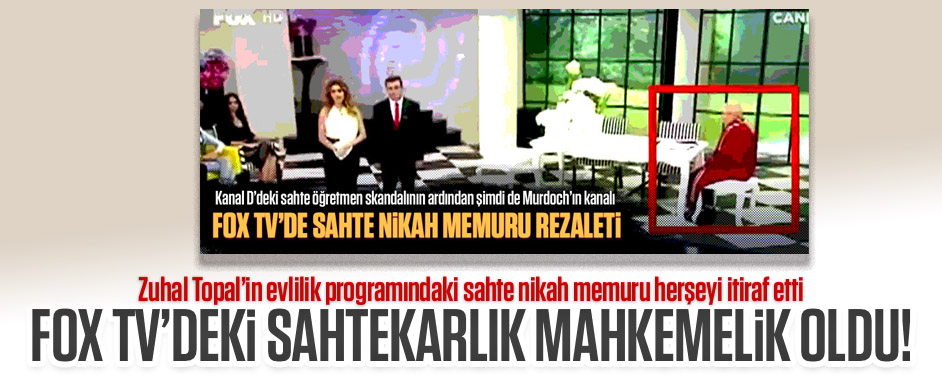 Kanal D’de Beyaz Show’daki sahte öğretmen rezaletinden sonra bir skandal da Fox TV’de yaşandı. Zuhal Topal’ın sunduğu evlilik programında sahte nikah memuru şoku yaşandı. Murdoch’ın sahibi olduğu Fox TV yine bir skandala imza atttı. Fox TV ekranlarında 20 Ekim 2015 tarihinde yayınlanan Zuhal Topal’da adlı izdivaç programına sahte nikah memuru …