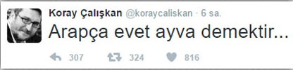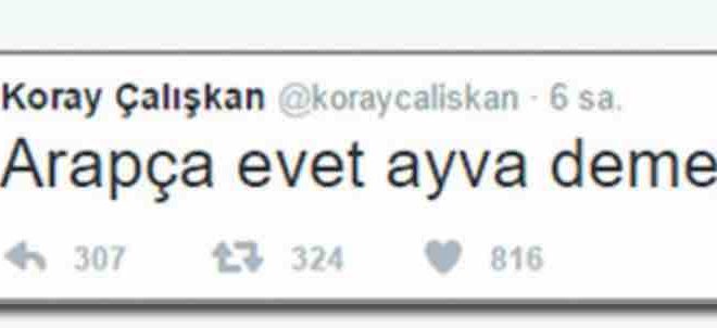 Koray Çalışkan, Twitter’da, Arapça’da ayva kelimesinin Türkçe karşılığının evet olduğunu anlatmaya çalıştı.