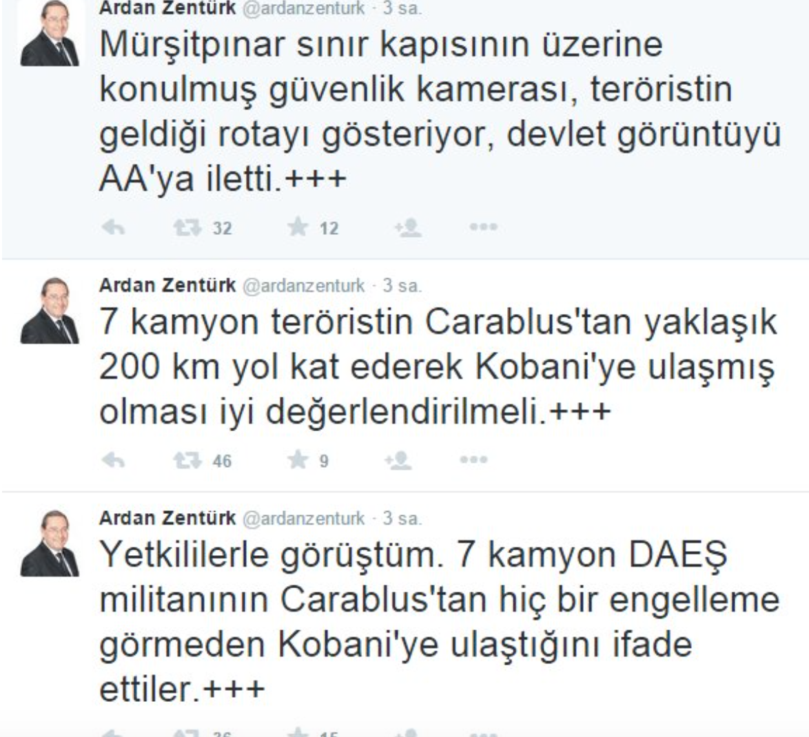 Gazeteci Ardan Zentürk de teröristlerin Cerabrus’tan geçtiğine dair bilgileri Twitter’dan paylaştı.