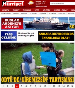 ODTÜ’de resmen ve alenen başörtülü kızlara yapılan çirkin saldırı, sırf örtüleri yüzünden uğradıkları taciz ve hakareti Hürriyet, “ODTÜ’de ‘Giremezsin’ tartışması” başlığıyla haberleştirdi.