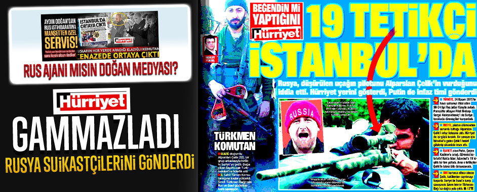 Rusya’nın DAEŞ’i bahane ederek Suriye’de sivillere ve Türkmenler’e yaptığı katliam yetmedi. Rus lider Putin, Türkiye tarafından düşürülen SU-24 uçağının pilotunu öldürdüğü gerekçesiyle Türkmenler’in komutanı Alparslan Çelik’i öldürmek için harekete geçti. Suriye’deki Türkmenler’in evlerini korumak için canını hiçe saya sayarak bölgede savaşan Çelik’in Ruslar tarafından tüm dünyada arandığı haberini yapan Hürriyet, ertesi gün Çelik’i İstanbul’da görüntüleyerek adeta Rusya’ya “Bakın aradığınız adam burada. Gelin vurun” mesajı verdi. Bu haber üzerine 19 kişilik suikast timi İstanbul’a geldi.