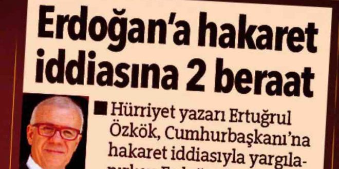 Hürriyet gazetesi başlığında ayrı içinde ayrı bir ifade kullanarak okuyucusunu kandırmaya çalıştı. Bilindiği üzere Cumhurbaşkanı Erdoğan, FETÖ’cü hainlerin 15 Temmuz kanlı darbe girişiminden sonra aldığı kararla, o güne kadar şahsı ile alakalı hakaret içeren birçok davayı geri çekmişti. Nitekim Hürriyet yazarı Ertuğrul Özkök, Cumhurbaşkanı Erdoğan’a hakaret ettiği ettiği gerekçeyle yargılandığı iki davada beraat etti.