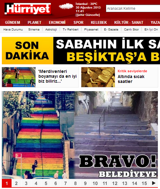 Hürriyet’in internet sitesi de “Bravo! Belediyeye” manşetiyle ağaçtan sonra merdiven için “provokasyon” düğmesine bastı.