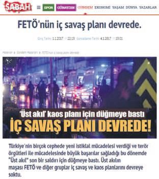 1 Ocak’ta SABAH’ın internet sitesinde “FETÖ’nün iç savaş planı devrede” başlıklı haber yayımlandı. Haberde “FETÖ ve PKK ile bağlantılı medya tam da provokasyonun ortasında. Odatv, Birgün gazetesi, Doğan medyası tamamen bu kaos için çalışacak” denildi.