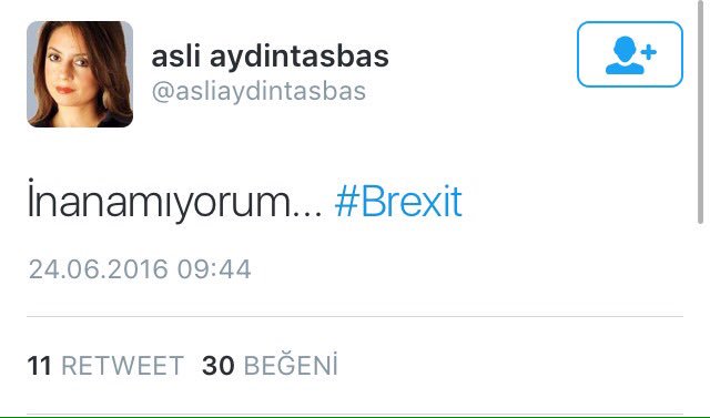 FETÖ-PKK gazetesi Cumhuriyet’in yazarı, Türkiye düşmanı Aslı Aydıntaşbaş, İngiltere’nin Avrupa Birliği’ne veda etmesi karşısında şok oldu. Aslı şu tweeti attı: