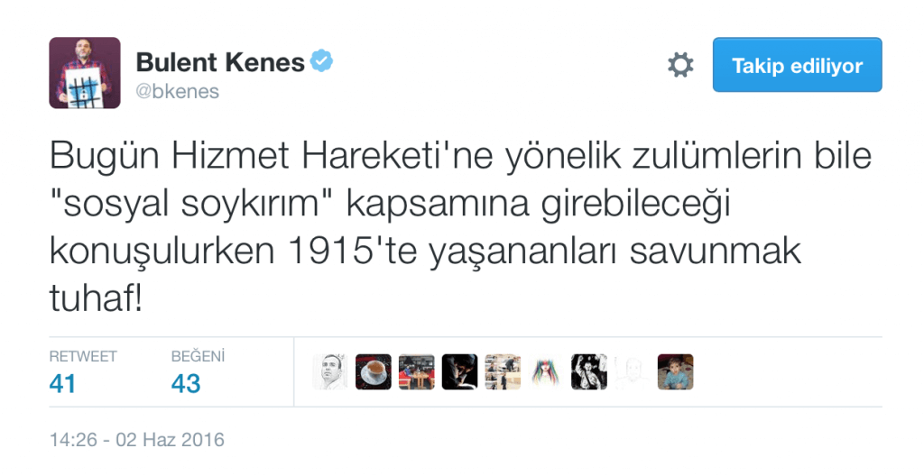 FETÖ’nün ağzı en bozuk tetikçisi Bülent Keneş, “Türkler Ermenilere soykırım yaptı” tezini destekleyen mesajlar paylaşarak Almanya’da alınan karara destek verdi.