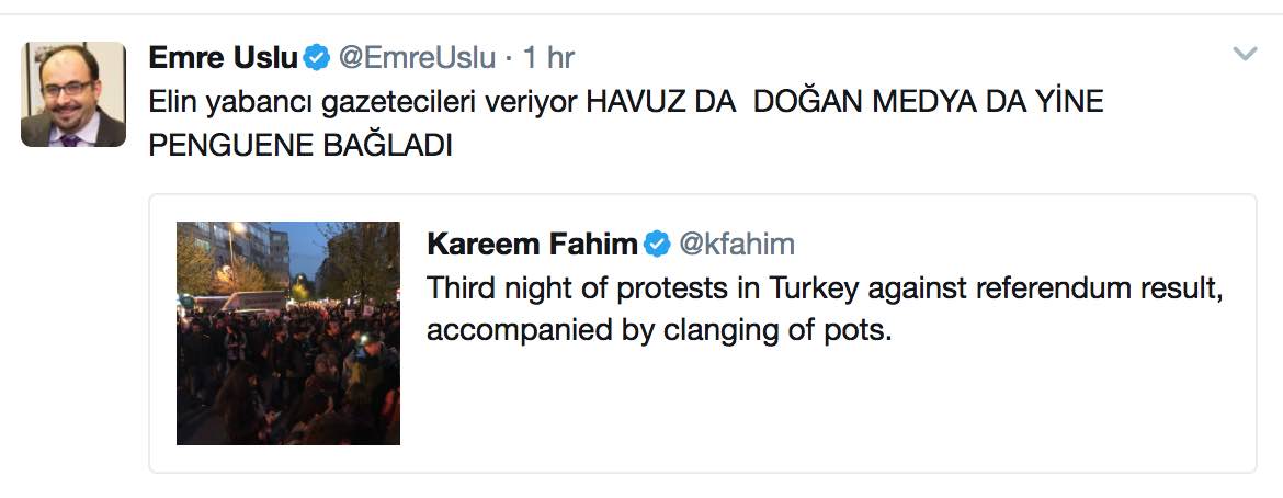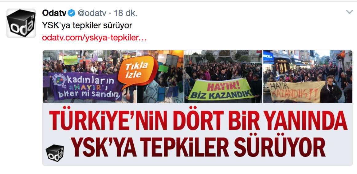 ‘‘Kadıköy’de Oda TV çağrı yapıyor, Evrensel çağrı yapıyor, Sözcü paçavrası çağrı yapıyor insanları sokağa çağırıyorlar. Ben bi tweet attım; ‘Evet çıktı ama savaş hazır olun’ diye. Bal gibi bunun psikolojik anlamda söylediğimi bildikleri halde bakın sokakları karıştırdılar.”