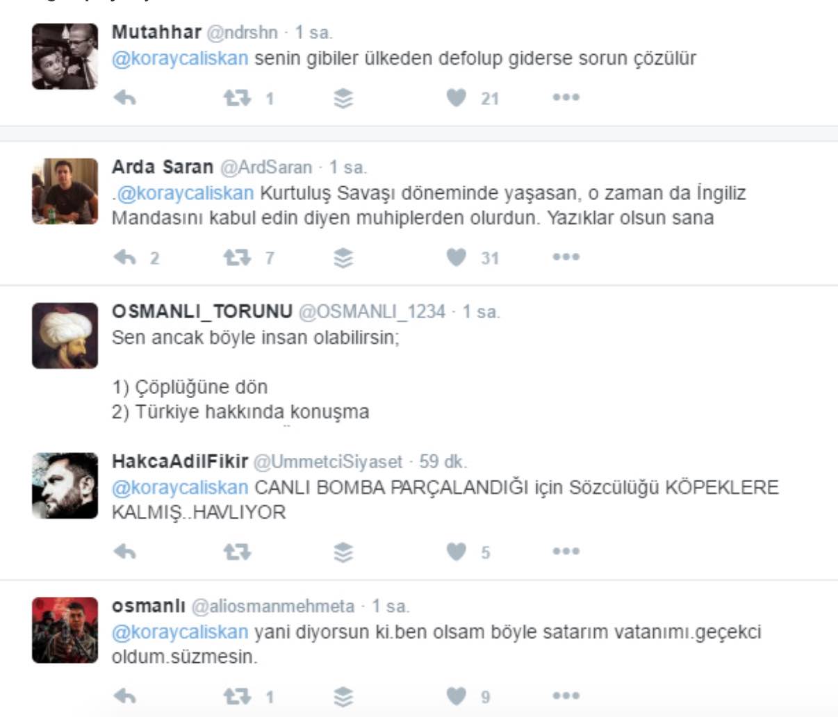 Çalışkan’ın bu paylaşımına büyük tepki gösteren sosyal medya kullanıcıları, Çalışkan’ın sözlerini İngiliz Muhipleri Derneği bildirgesine benzetti.