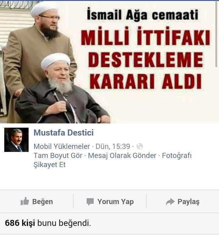 İsmailağa Cemaati, her zaman mü’min ferasetinin gerektirdiği sorumluluk ve hassasiyetle siyasi tercihlerini yapmış ve yapmaya devam edecektir.