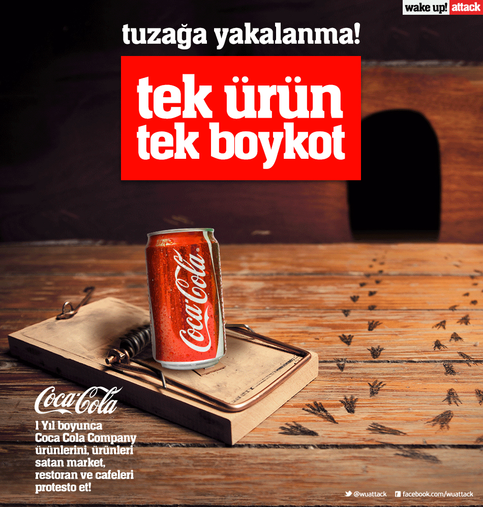 MEDYAGUNDEM.COM- Katil ve terör devleti İsrail’in mallarına karşı büyük bir boykot hareketi başladı. İsrail’in en büyük destelçisi, verilen her bir kuruş Filistin’de bebeklere kurşun ve bomba olarak dönen Coca Cola’ya bir yıl boyunca büyük bir boykot başladı. Coca Cola ürünlerini satan market, restoran ve cafeleri protesto dalgası çığ gibi büyüyor.