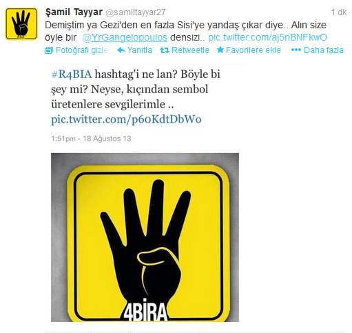 “Rabia” işaretine “4bira” yazan alçağın teki, şebbiha ve baltacılarla nasıl aynı kavmin çocuğu olduğunu da gösterdi.