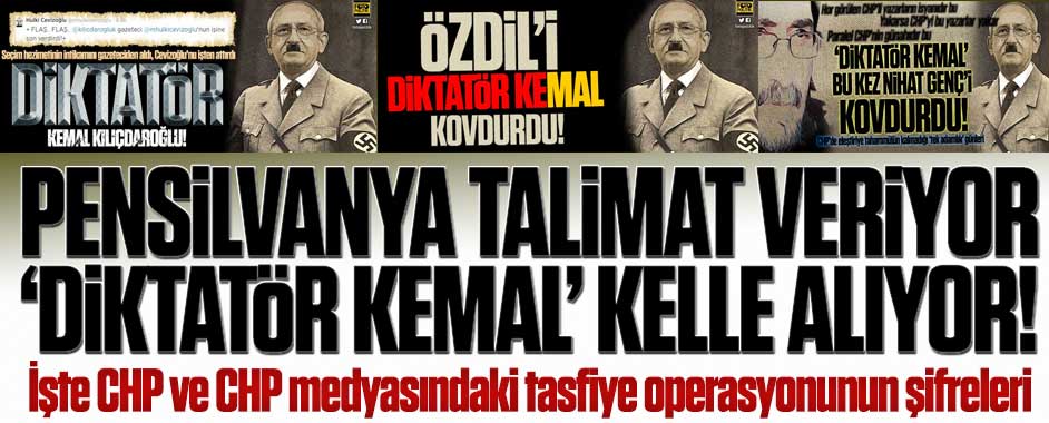 Şimdi de Pensilvanya’nın yeni talimatlarıyla Kılıçdaroğlu “diktatör Kemal” misyonuyla CHP’de tasfiye süreci başlattı. Paralel ihanet çetesinin istemediği kim varsa bir “diktatör” ve “tek adam” stratejisiyle Kılıçdaroğlu temizlik operasyonuna soyundu.