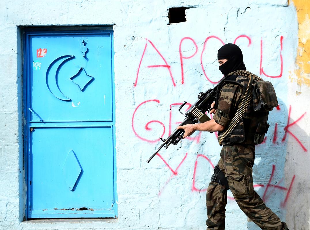 Halkın can ve mal güvenliğinin sağlanması için sokağa çıkma yasağının devam ettiği Fatihpaşa, Hasırlı ve Savaş mahalleleri ile Gazi Caddesi’nde hendek kazan, barikat kuran, güvenlik güçlerine silah ve bombalı saldırılarda bulunan, kamu düzenini bozan eylemler gerçekleştiren PKK’lı teröristlerin yakalanması, hendeklerin kapatılması ve barikatların kaldırılması için başlatılan operasyon sürüyor.