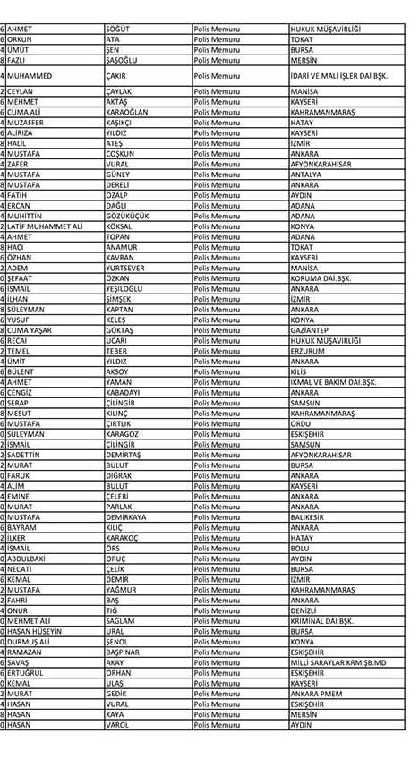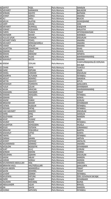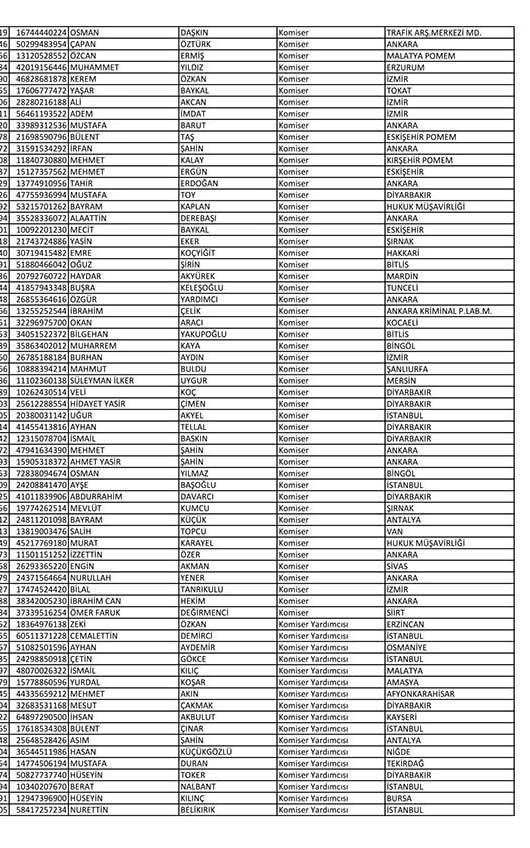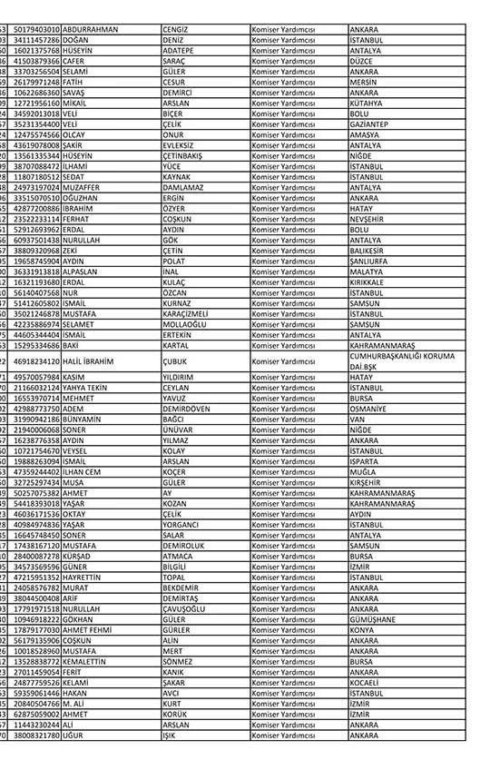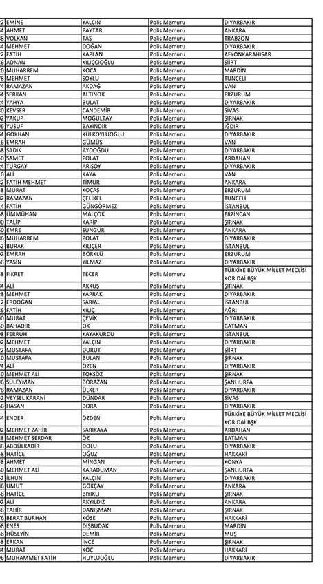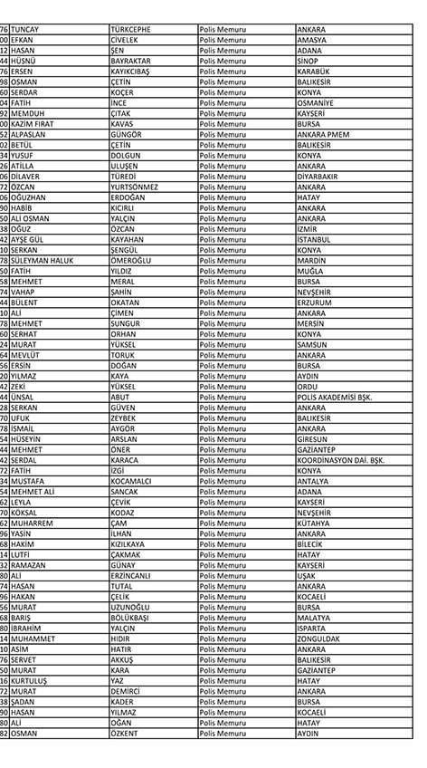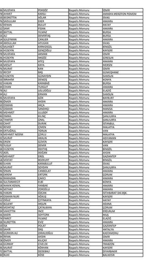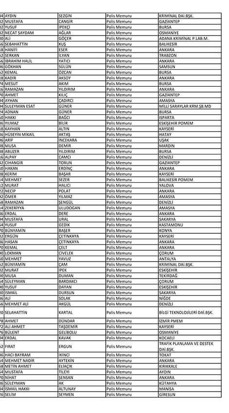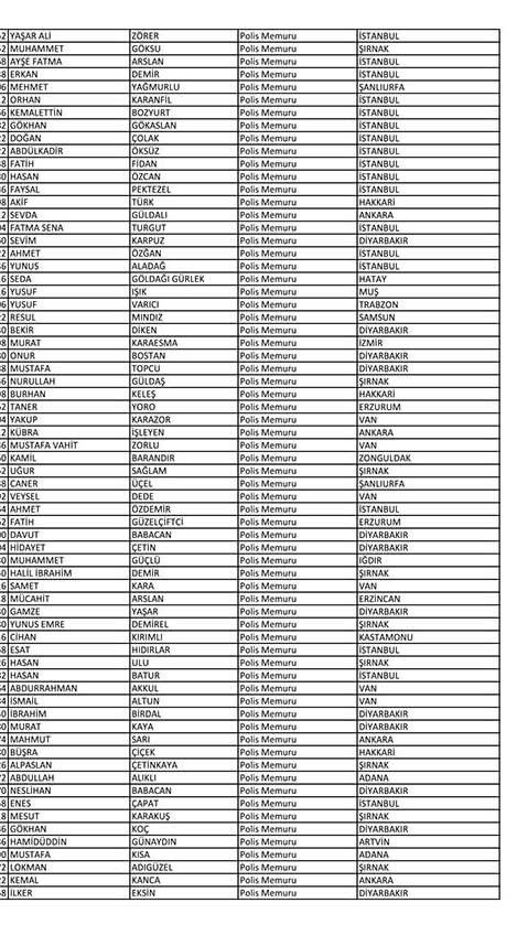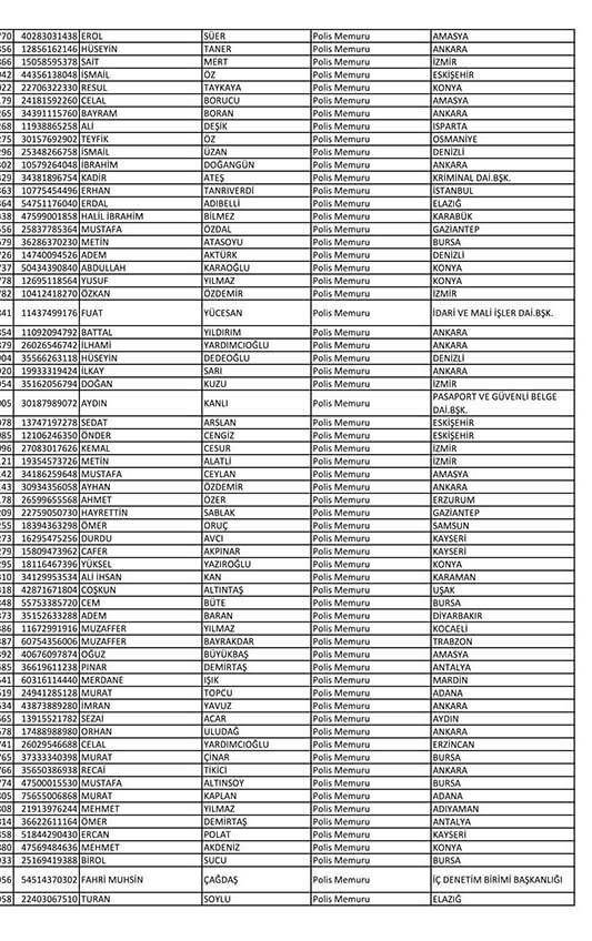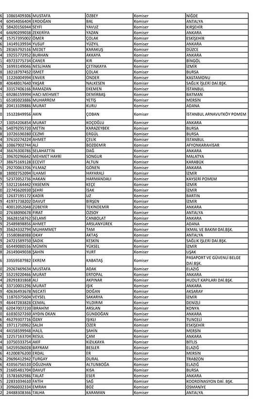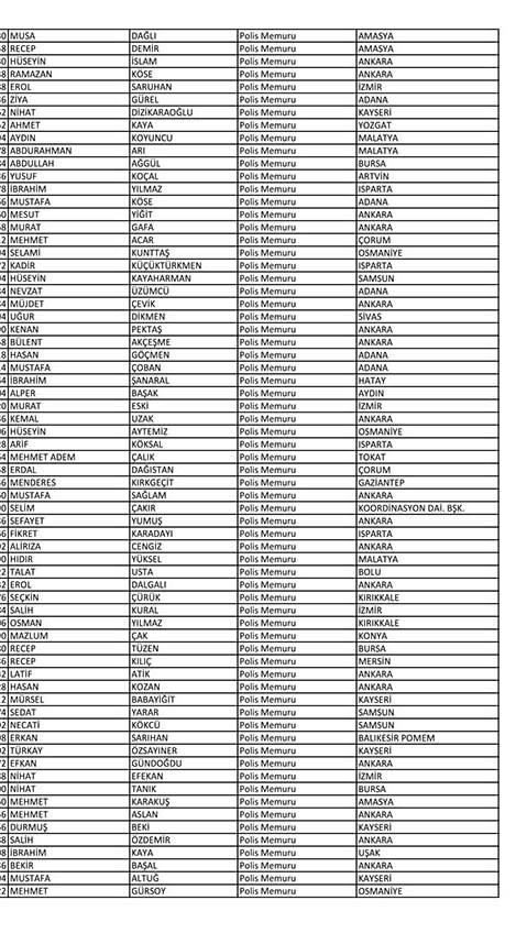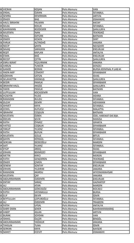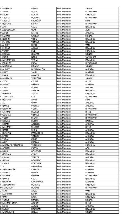 Emniyet Genel Müdürlüğü’nün kararıyla açığa alınan 9 bin 103 polisin isimleri belli oldu. Açığa alınanlardan 115’i emniyet müdürü. Listede 60 emniyet amiri de bulunuyor. Polislerden 2 bin 500’ü İstanbul’da bin 350’si Ankara’da görev yapıyordu. İşte il il açığa alınan polislerin tam listesi.