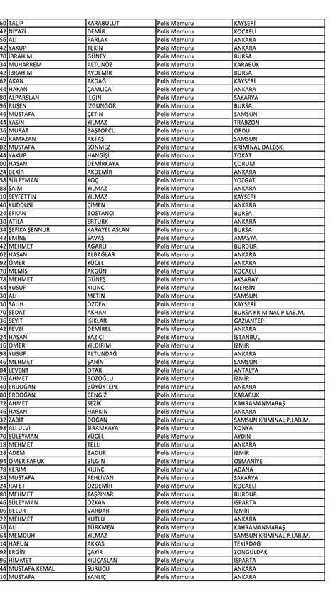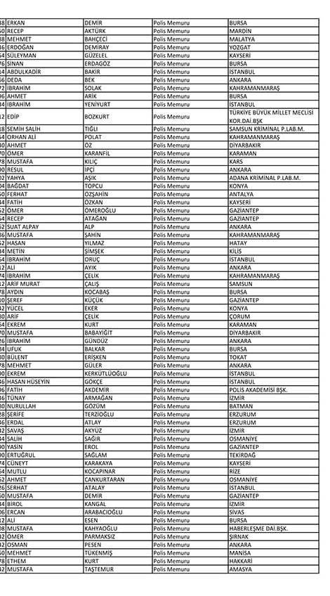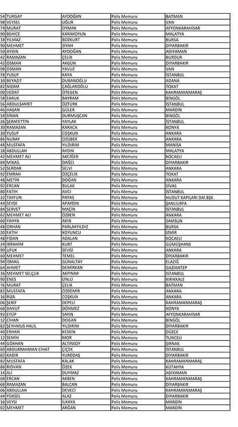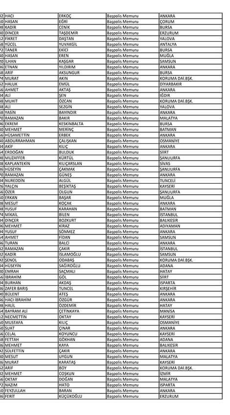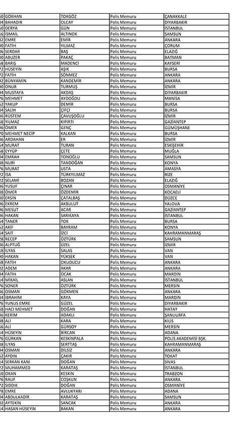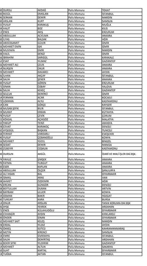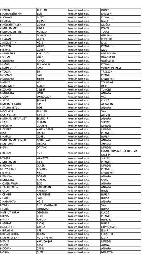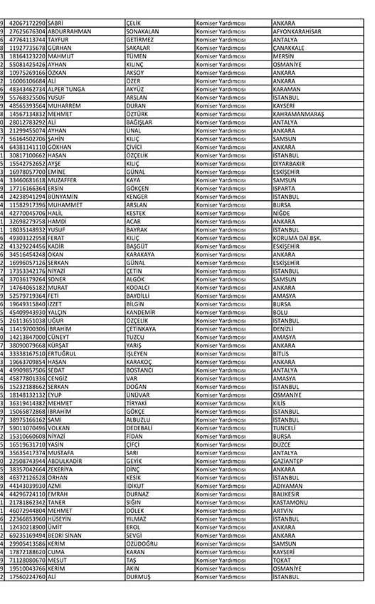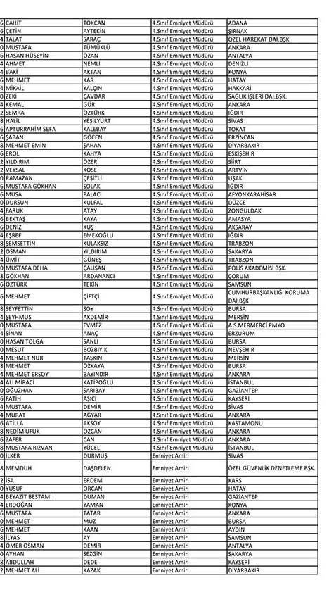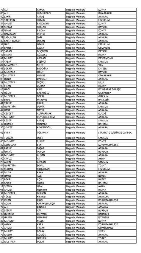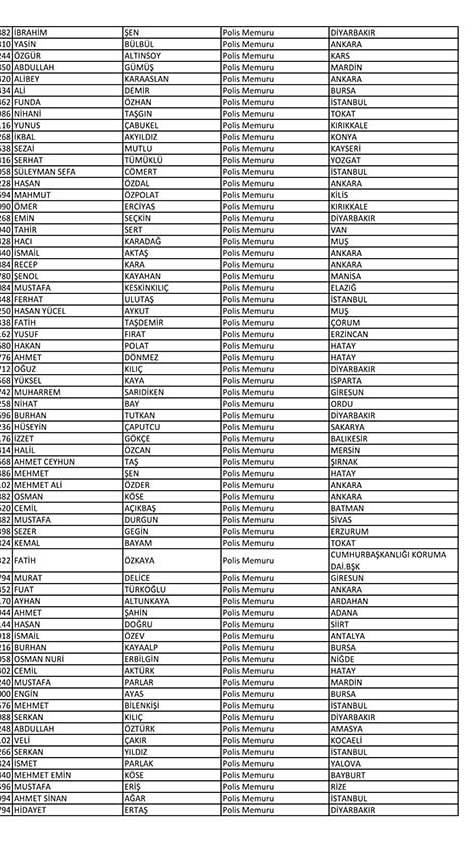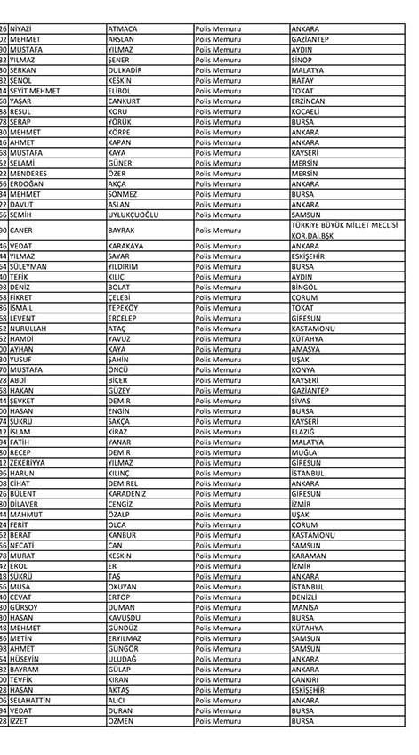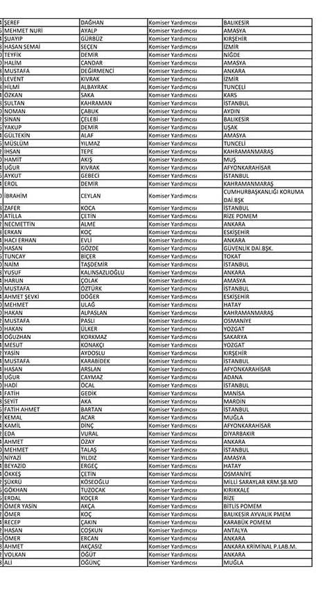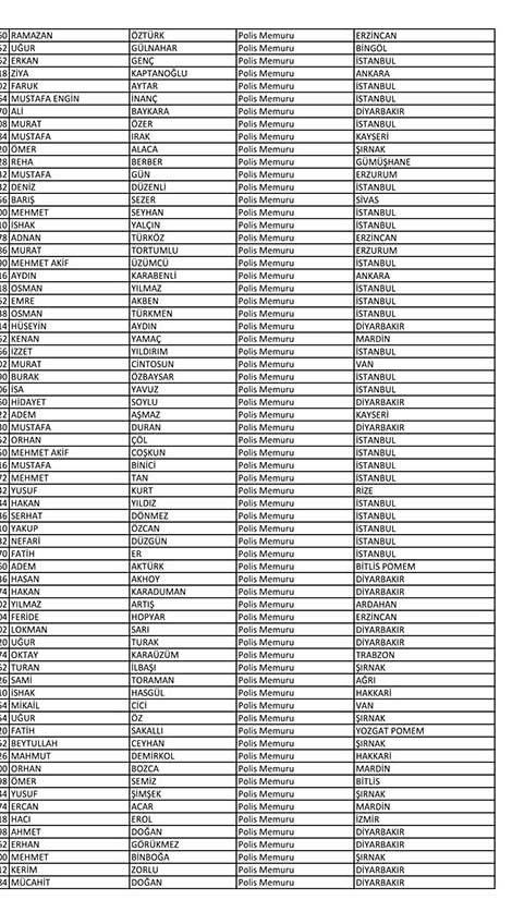 Emniyet Genel Müdürlüğü’nün kararıyla açığa alınan 9 bin 103 polisin isimleri belli oldu. Açığa alınanlardan 115’i emniyet müdürü. Listede 60 emniyet amiri de bulunuyor. Polislerden 2 bin 500’ü İstanbul’da bin 350’si Ankara’da görev yapıyordu. İşte il il açığa alınan polislerin tam listesi.