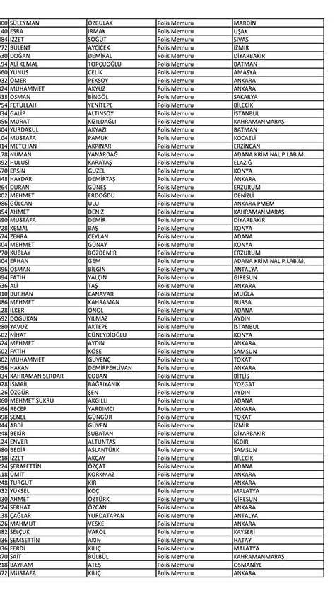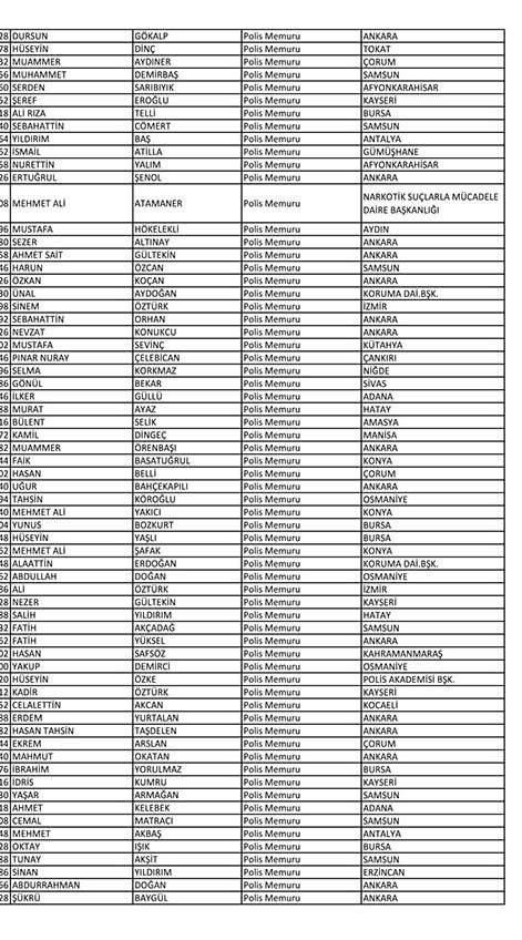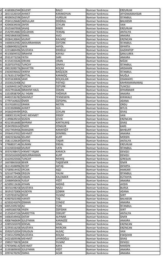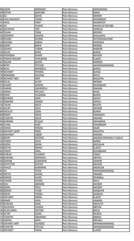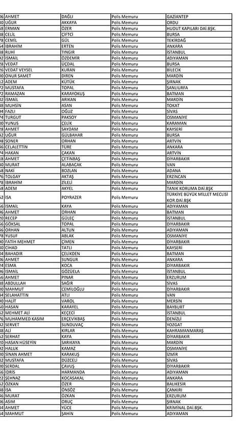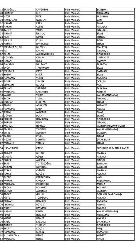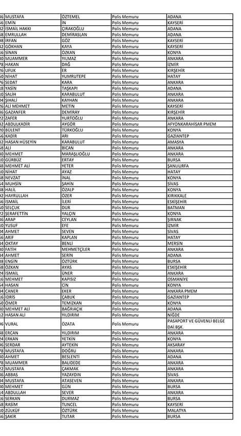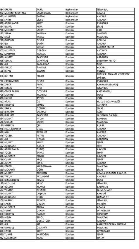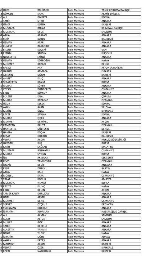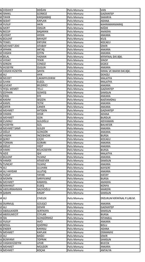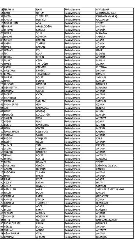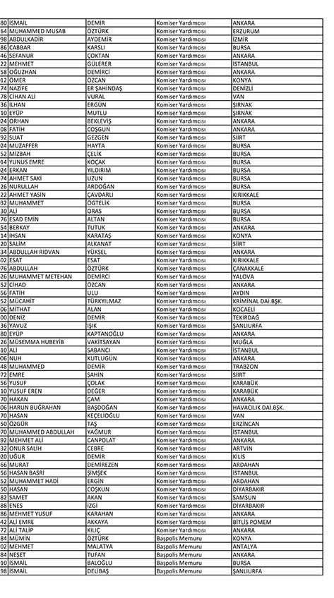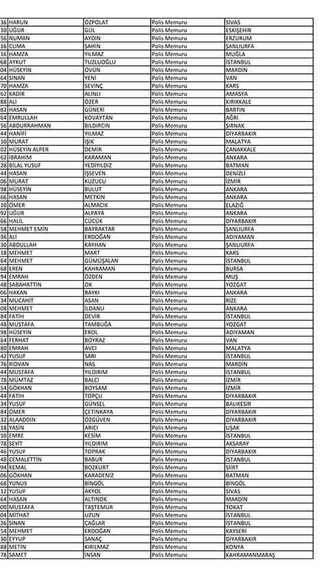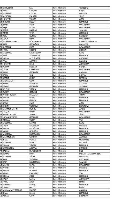 Emniyet Genel Müdürlüğü’nün kararıyla açığa alınan 9 bin 103 polisin isimleri belli oldu. Açığa alınanlardan 115’i emniyet müdürü. Listede 60 emniyet amiri de bulunuyor. Polislerden 2 bin 500’ü İstanbul’da bin 350’si Ankara’da görev yapıyordu. İşte il il açığa alınan polislerin tam listesi.