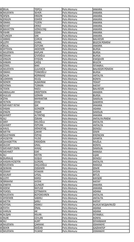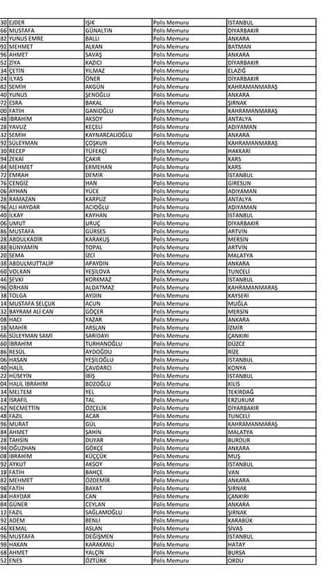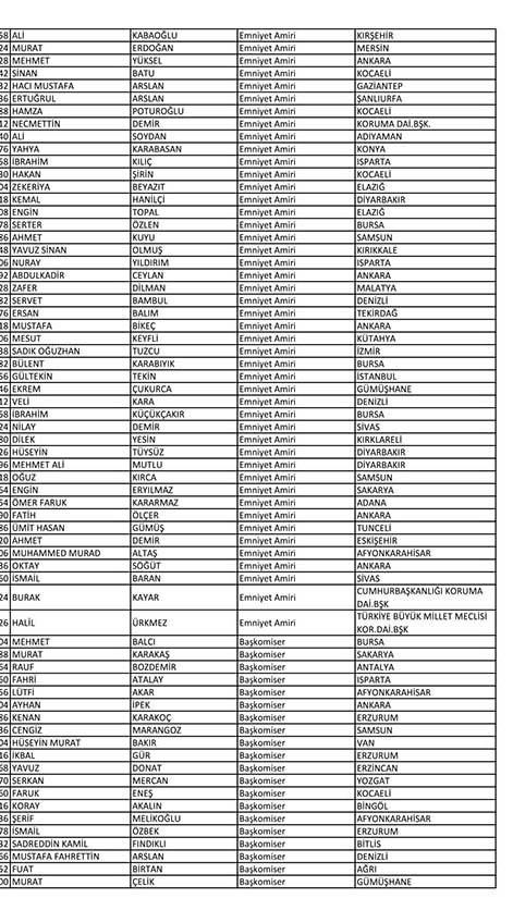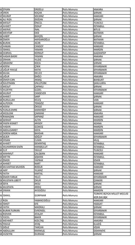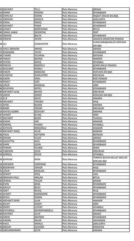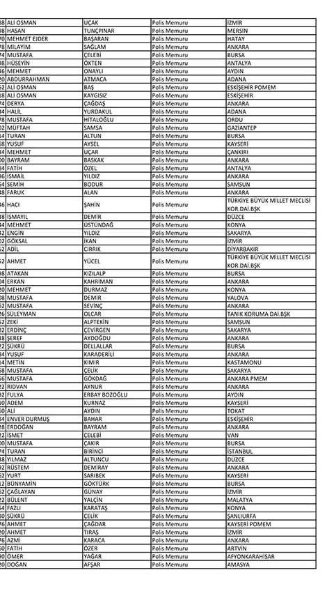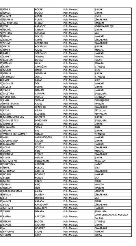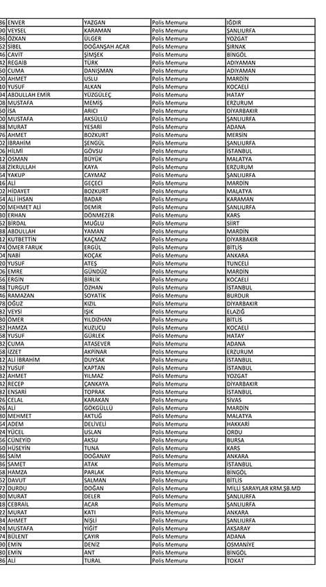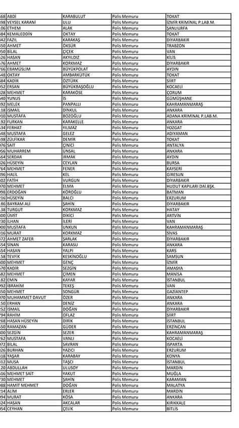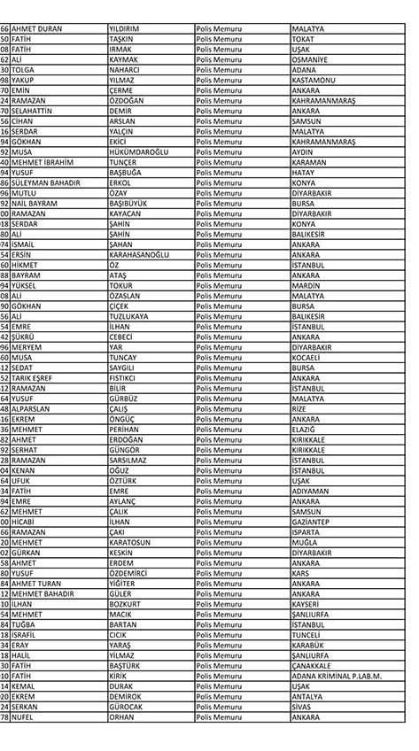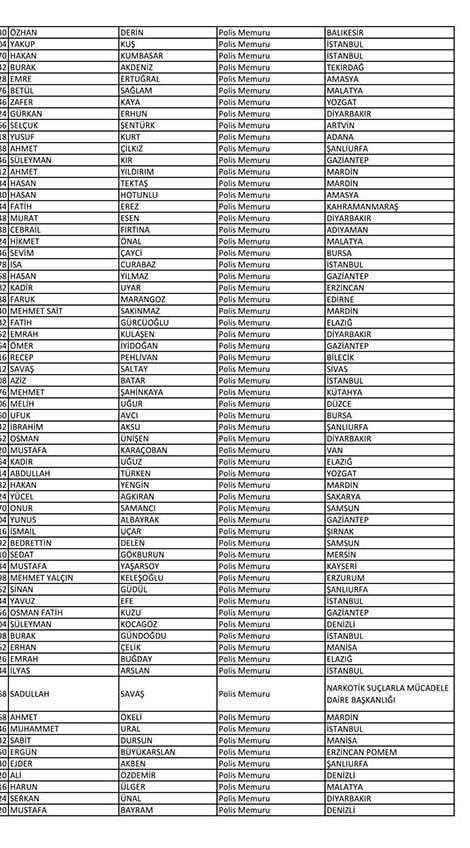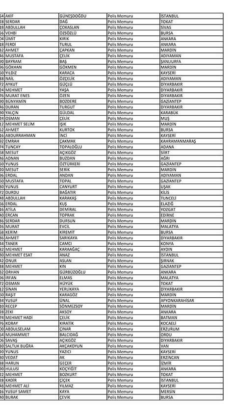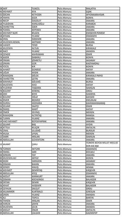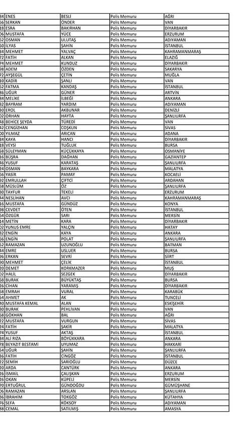 Emniyet Genel Müdürlüğü’nün kararıyla açığa alınan 9 bin 103 polisin isimleri belli oldu. Açığa alınanlardan 115’i emniyet müdürü. Listede 60 emniyet amiri de bulunuyor. Polislerden 2 bin 500’ü İstanbul’da bin 350’si Ankara’da görev yapıyordu. İşte il il açığa alınan polislerin tam listesi.