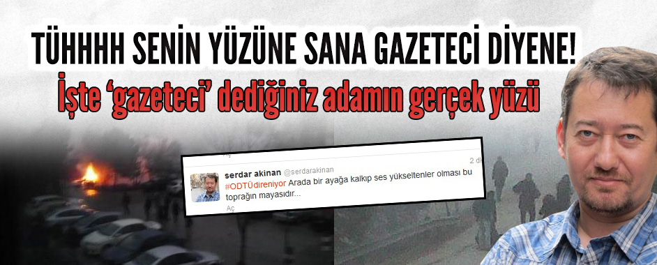 O isimlerden biri de Serdar Akinan’dı. Akinan, “#ODTÜdireniyor Arada bir ayağa kalkıp ses yükseltenler olması bu toprağın mayasıdır…” diyerek, Başbakan Erdoğan’a karşı ODTÜ’yü savaş alanına çeviren “demokrasi düşmanı” militanlara destek verdi.