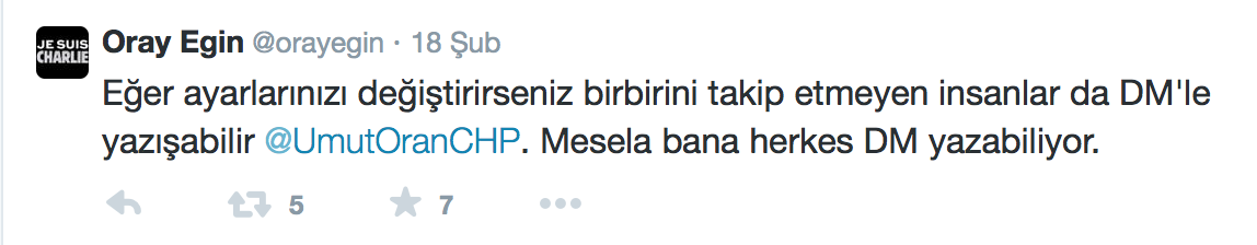Sözcü gazetesi yazarı Oray Eğin, Twiter’da bizzat Umut Oran’a iki gün önce yaptığı “mention”la Twitter’da iki kişinin birbirlerini takip etmeden nasıl mesajlaşabildiklerini açıkladı. Kaldı ki birbirlerini takip edip sonra da takipten çıkma yöntemi de sözkonusu…