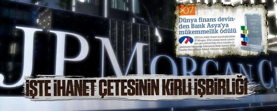 Bank Asya’nın, Türkiye’yi ekonomik krize sürüklemek isteyen JP Morgan tarafından ödüle layık görülmesi de ihanet çetesinin kimlerle işbirliği yaptığının bir delili olarak görüldü. (TAKVİM)