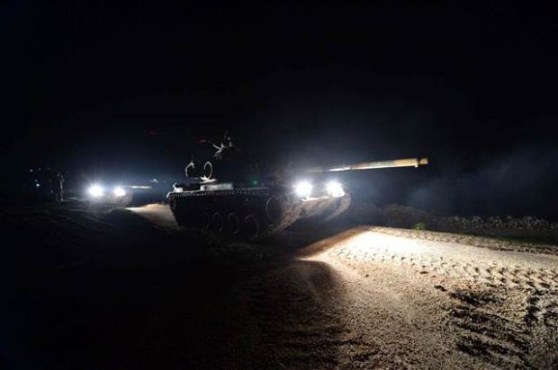 Tüm hazırlıkların tamamlanmasının ardından dün akşam havanın kararması ile operasyonda düğmeye basıldı. Sınır hattında konuşlandırılan birlikler eller tetikte bölgede kuş uçurtmadı. Bölgede güvenliğin sağlanmasının ardından Suriye sınırına birkaç kilometre uzaklıkta bulunan Hudut Tabur Komutanlığı’nda bekleyen birlikler, hakim tepelerden indirilen tank ve zırhlı araçlar sınıra yönlendirildi.
