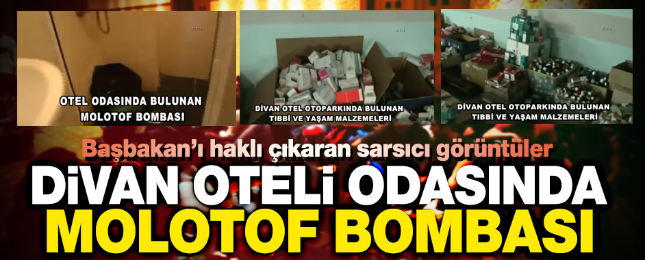 Gezi Parkı olayları sırasında polisin attığı gaz bombasından etkilenen göstericiler, Divan Otel’e sığınmıştı. Gazdan etkilenen göstericilere otelde müdahale edilmiş, otelin içi adeta revire çevrilmişti. Göstericilere kapılarını açan lüks otelin odalarından molotofkokteylleri çıktı. Polisin düzenlediği baskınlar sırasında molotofkokteyllerinin yanı sıra, otelin otopark bölümünde eylemcilere dağıtılmak üzere olduğu kaydedilen çeşitli yaşam malzemesi de bulundu. Polisin kaydettiği görüntülerde, lüks otelin bazı odalarında eylemlerde kullanılmak üzere hazırlanmış molotofkokteylleri yer alıyor. Sırt çantasında ve odanın banyo kısmında gizlenen molotofların, kullanıma hazır halde oldukları dikkat çekiyor. Otopark bölümünde ise tıbbi ve yaşam malzemeleri göze çarpıyor.