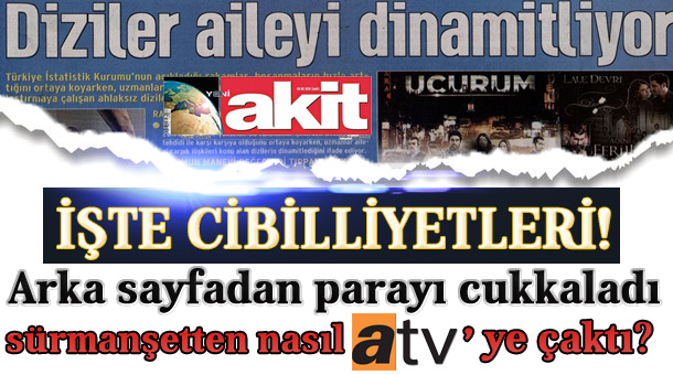 Arka sayfadan binlerce lirayı cebine indiren Yeni Akit, ön sayfadan reklamını yayınladığı ATV’ye çakarak, “nankörlüğün de böylesi” dedirtirken, “cibilliyetini” de bir kez daha ortaya koydu.